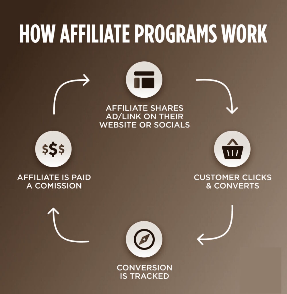 This is the concept behind affiliate marketing. Affiliate marketing is the process by which an affiliate earns a commission for marketing another person’s or company’s products. The affiliate simply searches for a product they enjoy, then promotes that product and earns a piece of the profit from each sale they make. The sales are tracked via affiliate links from one website to another.